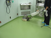 床材に合わせた洗浄剤を使用し機械洗浄 清水にて水洗い モップ拭き *長尺シート・化学床はワックス塗布 |